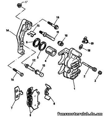 рассматриваемом скутере установлен суппорт плавающего типа. Суппорты